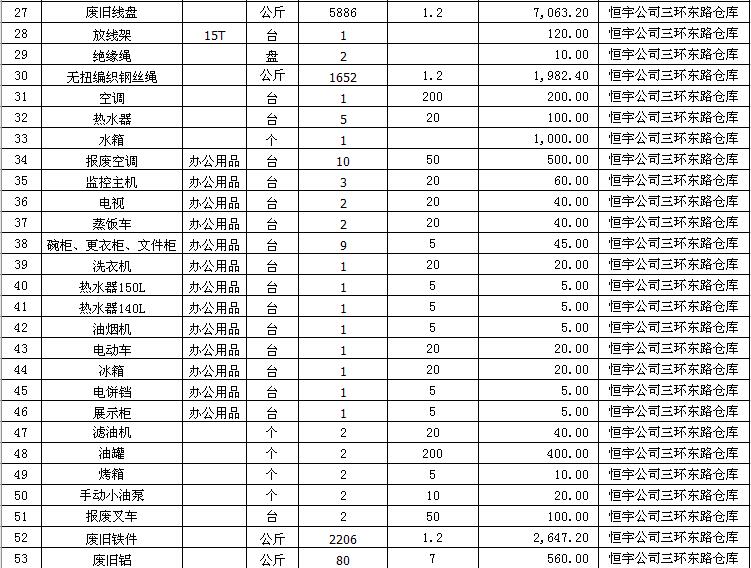 三、本次拍賣物資部分按照單價拍賣,部分打包拍賣。