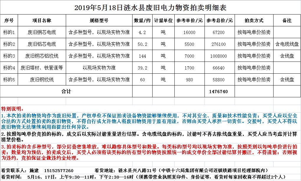 關(guān)注微信公眾號受委托,我公司將通過中國拍賣行業(yè)協(xié)會網(wǎng)絡(luò)拍賣平臺以網(wǎng)絡(luò)競價(jià)的方式公開拍賣以下廢舊電力物資,主要包括:銅芯電纜、鋁芯電纜、鋼芯鋁絞線、鋼絞線、角鋼塔等。