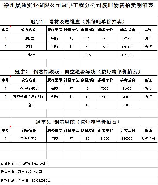 關(guān)注微信公眾號(hào)受委托,我公司將通過中國拍賣行業(yè)協(xié)會(huì)網(wǎng)絡(luò)拍賣平臺(tái)以網(wǎng)絡(luò)競(jìng)價(jià)的方式公開拍賣廢舊電力物資一批,主要包括:電纜、導(dǎo)線、廢舊鋼材、鋼芯鋁絞線、金具、雜品、機(jī)具、空調(diào)、辦公設(shè)備等。