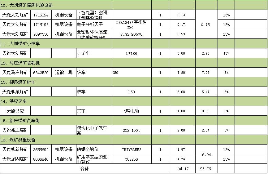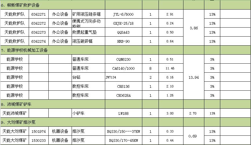 裝載機、通風機、綜掘機、變壓器、鏟車、叉車、排沙泵、汽車衡、繪圖儀、救護設(shè)備、機械加工設(shè)備、測量設(shè)備等。
