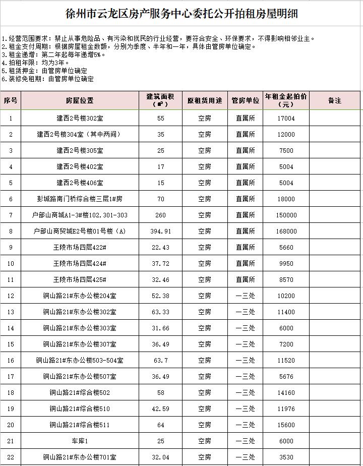 關(guān)注微信公眾號(hào)我公司受委托,定于2020年12月18日10時(shí)在中山南路55號(hào)本公司拍賣廳對(duì)云龍區(qū)公有房屋50余處進(jìn)行公開拍租: