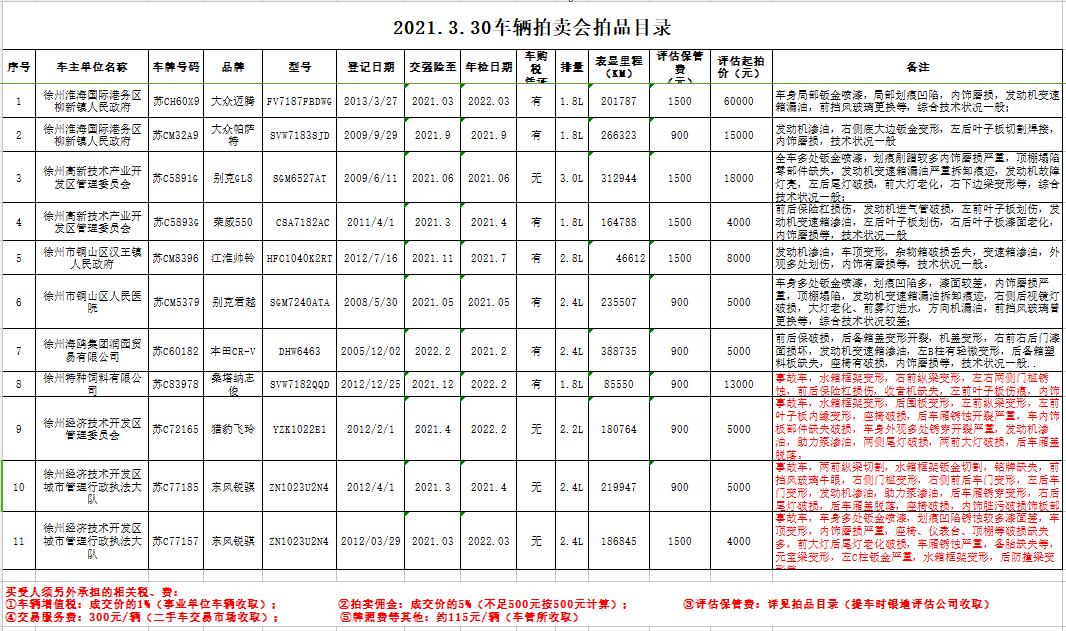 關注微信公眾號我公司受委托,定于2021年3月30日9:30在中拍平臺公開拍賣以下公務車輛: