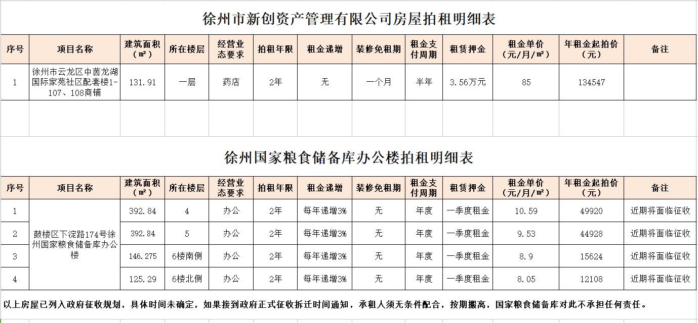 1.云龍區(qū)中茵龍湖國(guó)際家苑社區(qū)1-107、108商鋪,建筑面積131.91㎡。(租期2年,僅限經(jīng)營(yíng)藥店。保證金2萬(wàn)元,須交至徐州市公共資源交易中心賬戶)